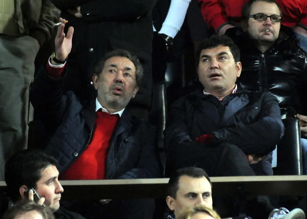 Nicolae Badea si Cristi Borcea urmaresc partida Rapid Bucuresti - Dinamo Bucuresti, din etapa a XXI-a a Ligii I, disputata in Bucuresti, sambata, 12 martie 2011. LAURENTIU MICH / MEDIAFAX FOTO