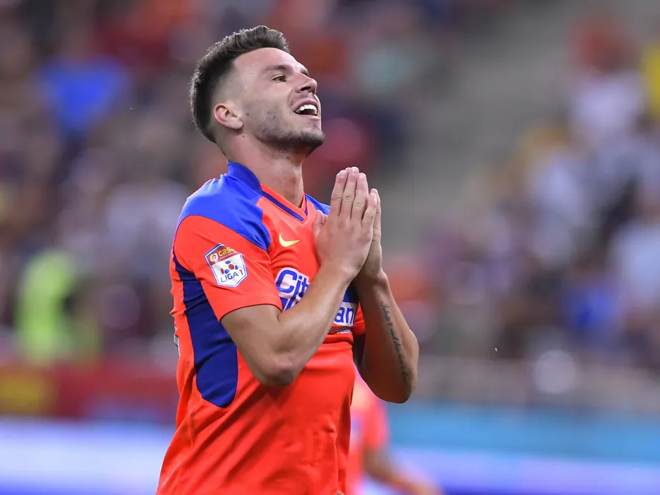Andrei Ioan Cordea suparat dupa o ratare in meciul de fotbal dintre FCSB si FC Shakhter Karagandy, contand pentru Turul 2 preliminar din cadrul UEFA Confrence League, desfasurat pe Arena Nationala din Bucuresti, joi 22 iulie 2021. © FOTO:Razvan Pasarica/SPORT PICTURES