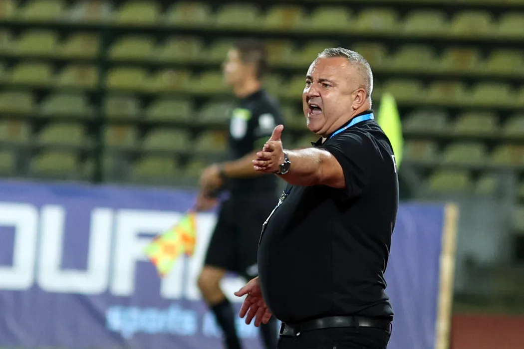 Mihai Iosif, antrenorul echipei Rapid Bucuresti, urmareste meciul de fotbal contra formatiei FC Arges din etapa a IV-a a Ligii 1, disputat pe stadionul Nicolae Dobrin din Ploiesti, sambata, 7 august 2021. GEORGE FILIP / MEDIAFAX FOTO