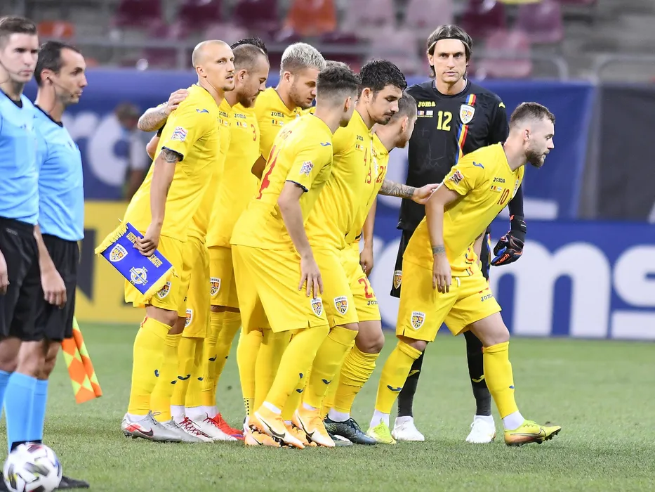 Fotbalistii romani Vlad Chiriches, Denis Alibec, George Puscas, Sergiu Hanca, Ciprian Tatarusanu si Alexandru Maxim dupa fotografia de grup realizata inainteain meciului de fotbal dintre Romania si Irlanda de Nord, contand pentru Liga Natiunilor, desfasurat fara spectatori pe Arena Nationala din Bucuresti, vineri 4 septembrie 2020. © FOTO:Razvan Pasarica/SPORT PICTURES
