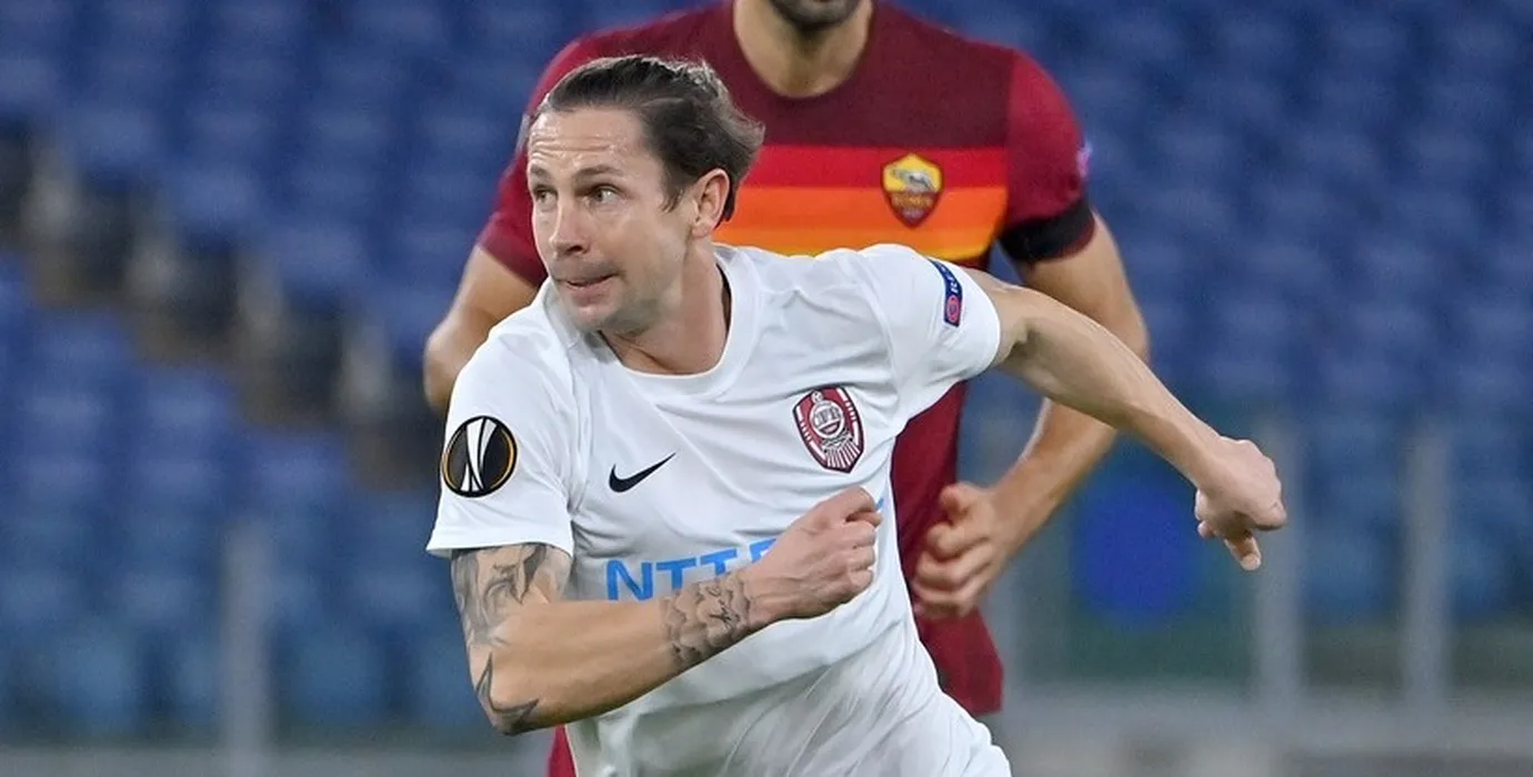 CFR Cluj's Romanian midfielder Ciprian Deac runs with the ball during the UEFA Europa League Group A football match Roma vs CFR Cluj on November 5, 2020, at Olympic stadium in Rome.,Image: 567592515, License: Rights-managed, Restrictions: , Model Release: no