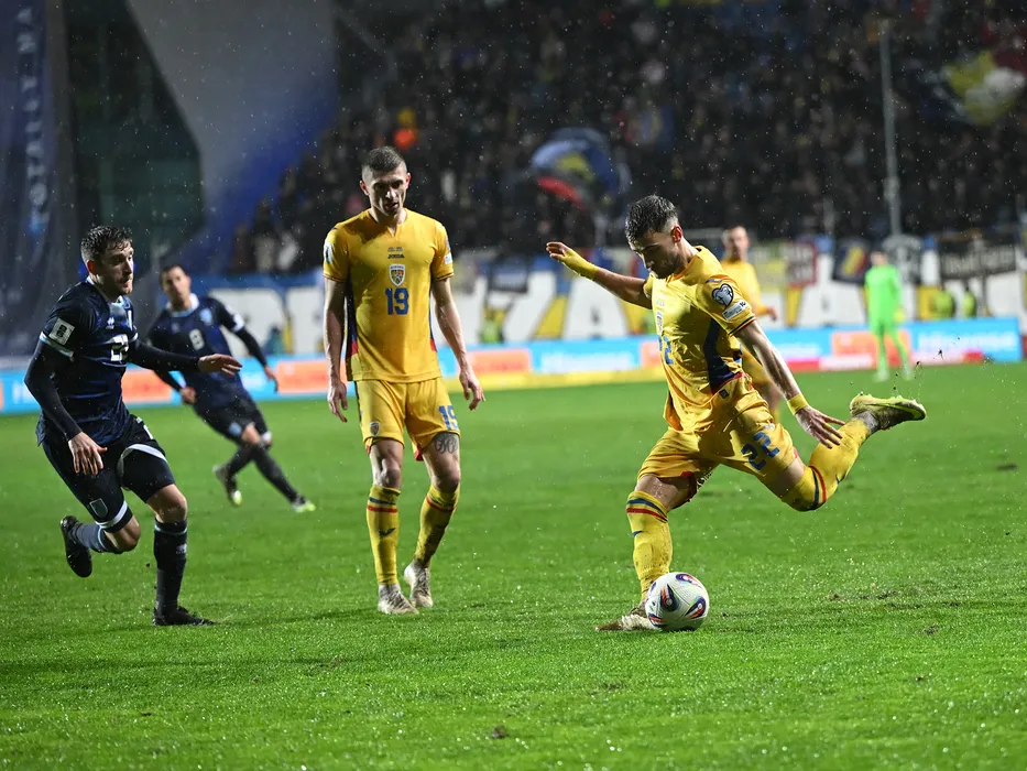 Florin Tanase si Vlad Dragomir in meciul de fotbal dintre Romania si San Marino, din cadrul Preliminariilor Campionatului Mondial 2026, desfasurat pe Stadionul Ilie Oana din Ploiesti, marti 18 noiembrie 2025. © FOTO:Razvan Pasarica/SPORT PICTURES