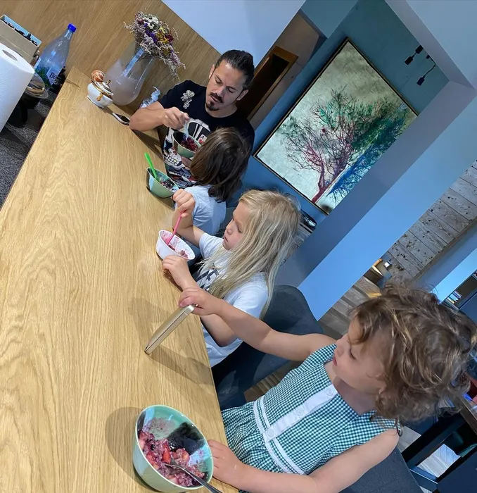 Florescu alături de cei trei copii pe care George îi are cu Irina, soția întâlnită la Chișinău
