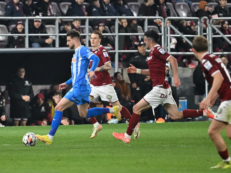 Cristian Mihai Căpățînă, Tobias Christensen si Alexandru Stefan Pascanu in meciul de fotbal dintre Rapid Bucuresti si Universitatea Craiova, din cadrul Play-off-ului Superligii Superbet, desfasurat pe Superbet Arena-Giulesti din Bucuresti, sambata 29 martie 2025. © FOTO:Razvan Pasarica/SPORT PICTURES
