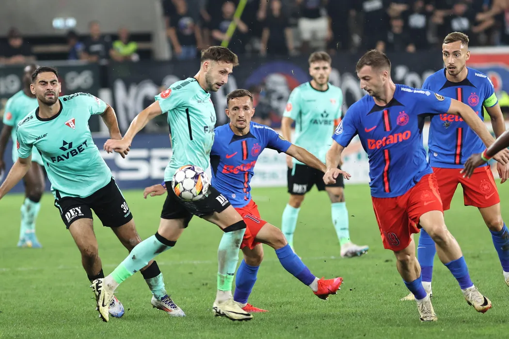 Iliuță Daniel Popa, Marius Ștefănescu, Mihai Daniel Lixandru și Răzvan Alin Trif, Benjamin Andre P Van Durmen în meciul de fotbal dintre FCSB și UTA Arad, contând pentru Superliga Superbet, desfășurat pe Stadionul Arcul de Triumf din București, duminică 1 septembrie 2024. © FOTO: Gică FLUȘTER/SPORT PICTURES