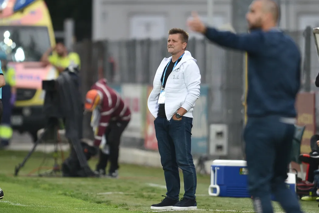 Dusan Uhrin, antrenorul echipei Gaz Metan Medias, urmareste meciul de fotbal contra echipei AFC Astra Giurgiu din etapa a III-a a play-off-ului Ligii 1, disputat pe stadionul Marin Anastasovici din Giurgiu, luni, 15 iunie 2020. ALEXANDRU DOBRE/ MEDIAFAX FOTO