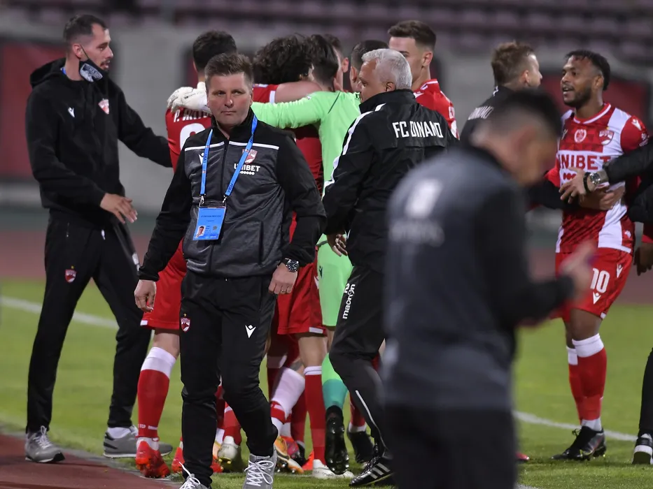 Dusan Uhrin Junior se bucura dupa un gol marcat de elevii sai in meciul de fotbal dintre Dinamo Bucuresti si Astra Giurgiu, contand pentru semifinala retur a Cupei Romaniei, desfasurat fara spectatori pe Stadionul Dinamo din Bucuresti, marti 11 mai 2021. © FOTO:Razvan Pasarica/SPORT PICTURES