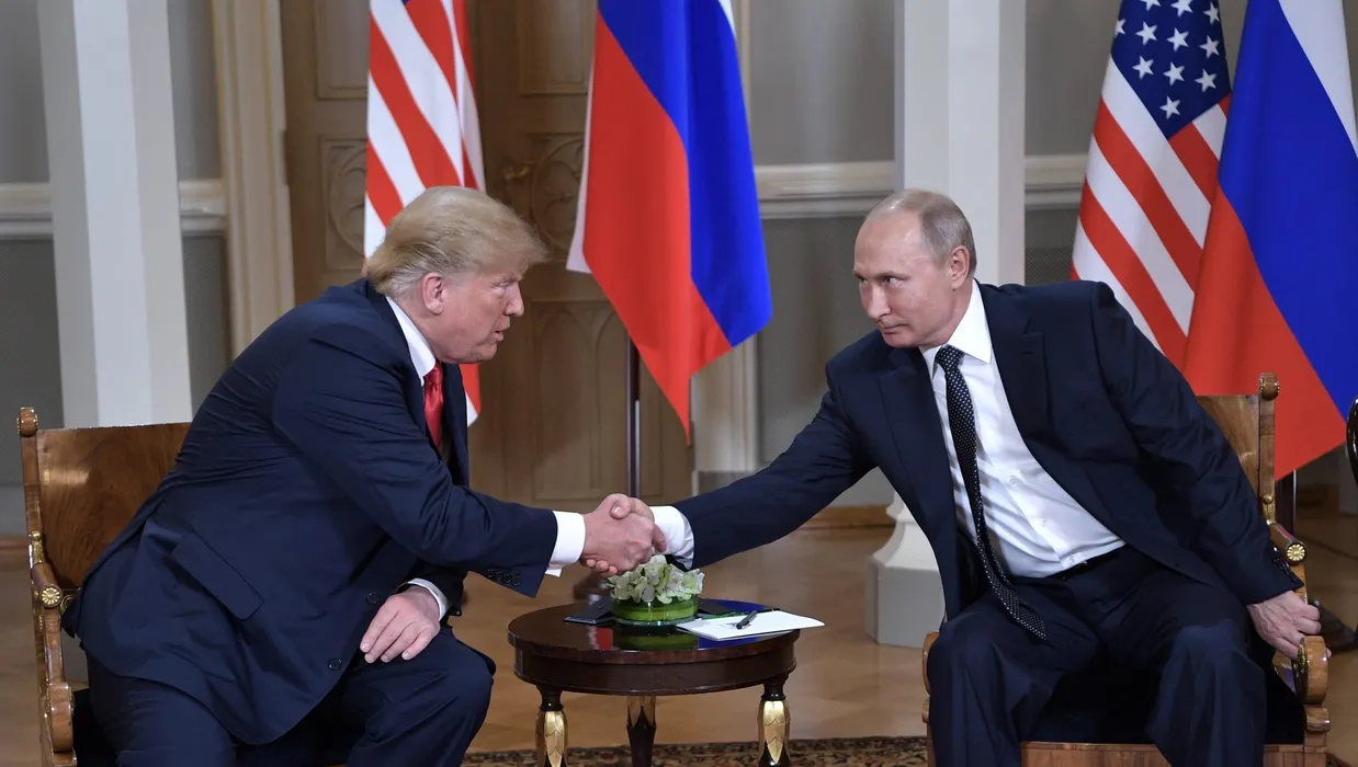 5593683 16.07.2018 July 16, 2018. Russian President Vladimir Putin and US President Donald Trump, left, during a meeting at the Presidential Palace in Helsinki. Aleksey Nikolskyi / Sputnik