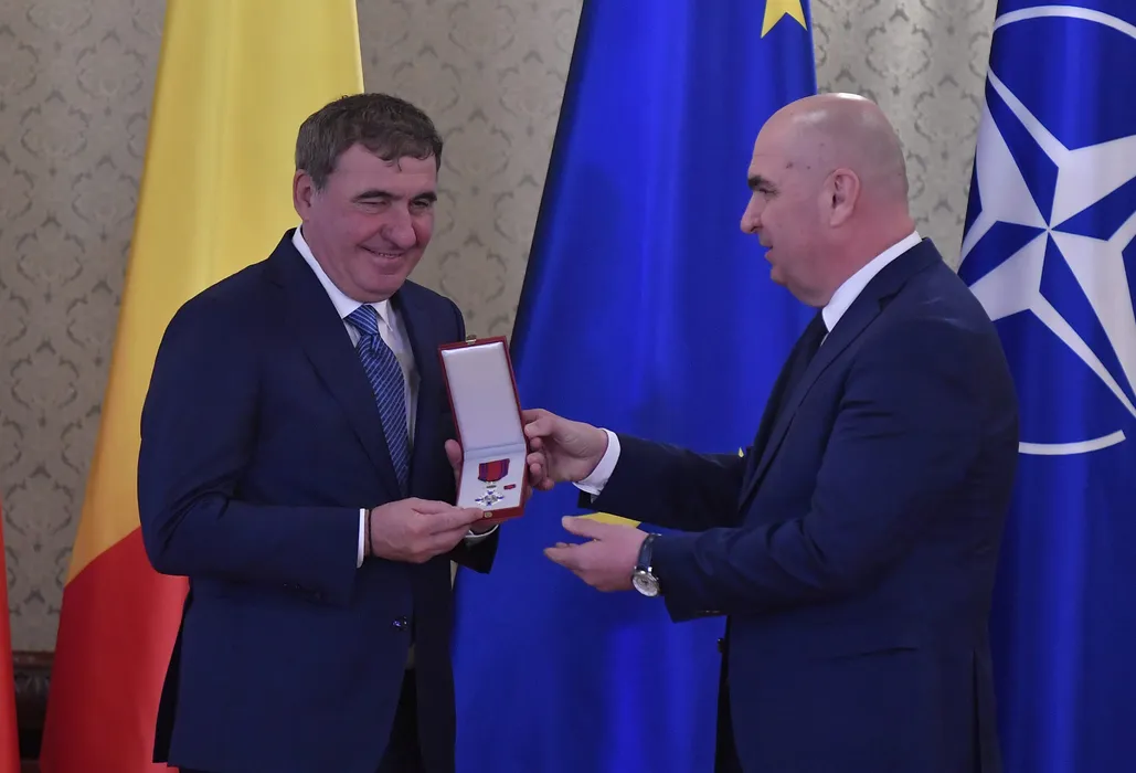 Gheorghe Hagi este decorat de presedintele interimar Ilie Bolojan cu cea mai inalta distinctie a statului roman Ordinul National "Steaua Romaniei" in grad de Cavaler, eveniment organizat la Palatul Cotroceni, miercuri 12 martie 2025. © FOTO: Simion Mechno/SPORT PICTURES