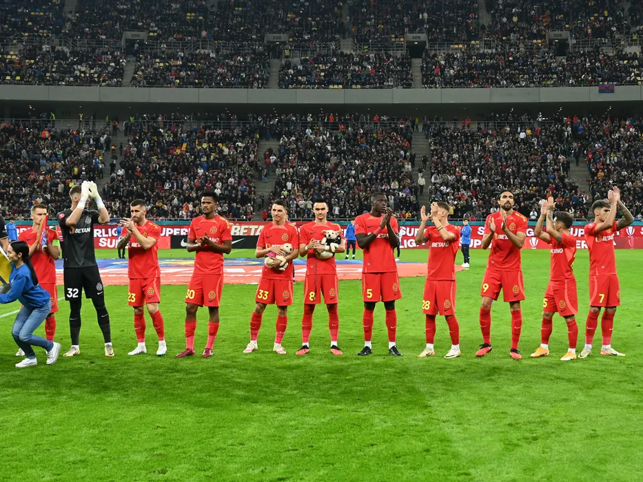 Fotbalistii stelisti la startul meciului de fotbal dintre FCSB si Rapid Bucuresti, din cadrul Superligii Superbet, desfasurat pe Arena Nationala din Bucuresti, duminica 5 noiembrie 2023. © FOTO:Razvan Pasarica/SPORT PICTURES