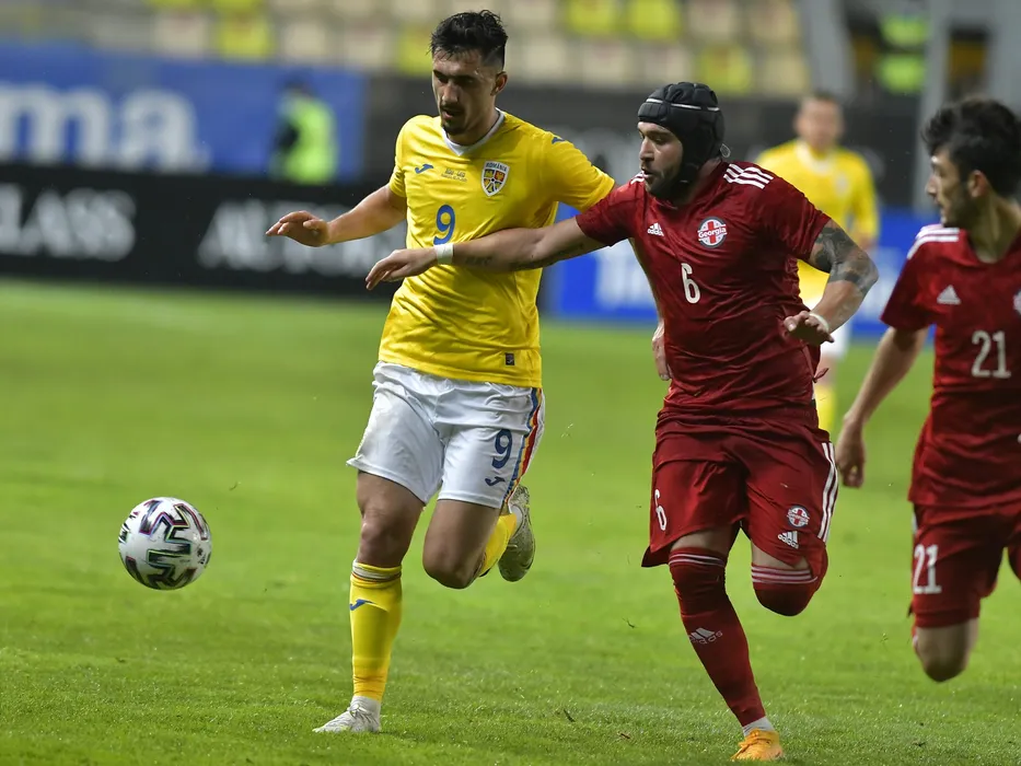 Andrei Ivan si Murtaz Daushvili in meciul amical de fotbal dintre Romania si Georgia, disputat pe Stadionul Ilie Oana din Ploiesti, miercuri 2 iunie 2021. © FOTO:Razvan Pasarica/SPORT PICTURES