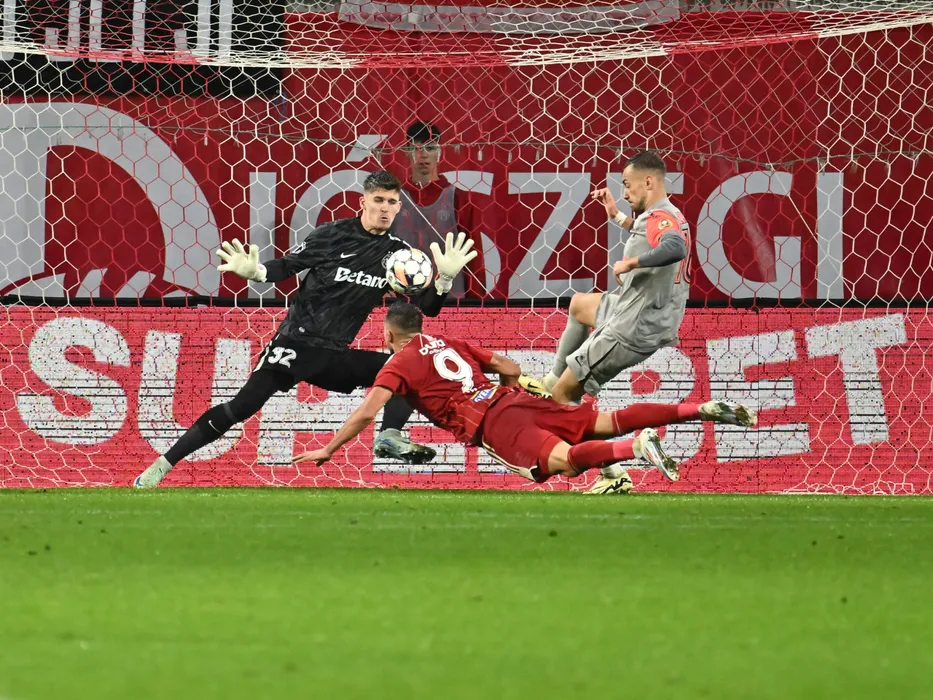 Ștefan Târnovanu respinge lovitura lui Marius Cătălin Coman sub privirile lui Mihai Daniel Lixandru in meciul dintre Sepsi OSK Sfantu Gheorghe si FCSB, contand pentru Superliga Superbet, desfasurat pe Sepsi Arena din Sfantu Gheorghe, duminica 29 septembrie 2024. © FOTO:Razvan Pasarica/SPORT PICTURES