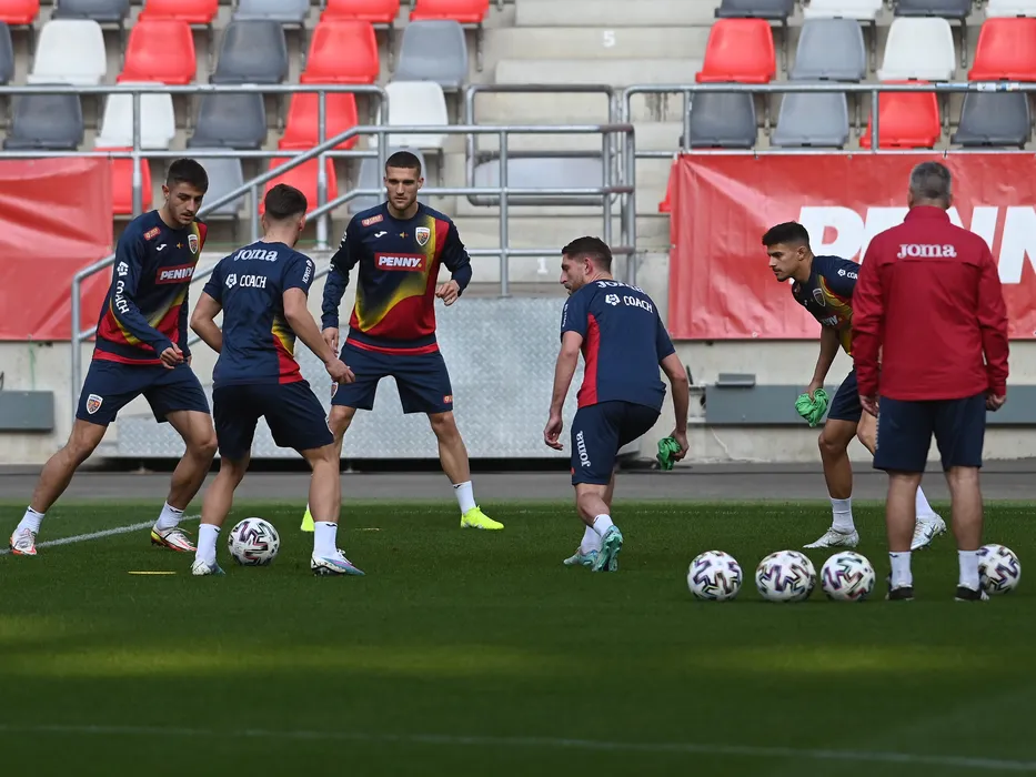 Fotbalistii tricolori Victor Dican, Daniel Birligea, Marco Ehmann si Alexandru Tirlea la antrenamentul oficial al Romaniei U21 de dinaintea meciului amical impotriva Portugaliei U21, desfasurat la Stadionul Steaua din Bucuresti, joi 23 martie 2023. © FOTO:Razvan Pasarica/SPORT PICTURES