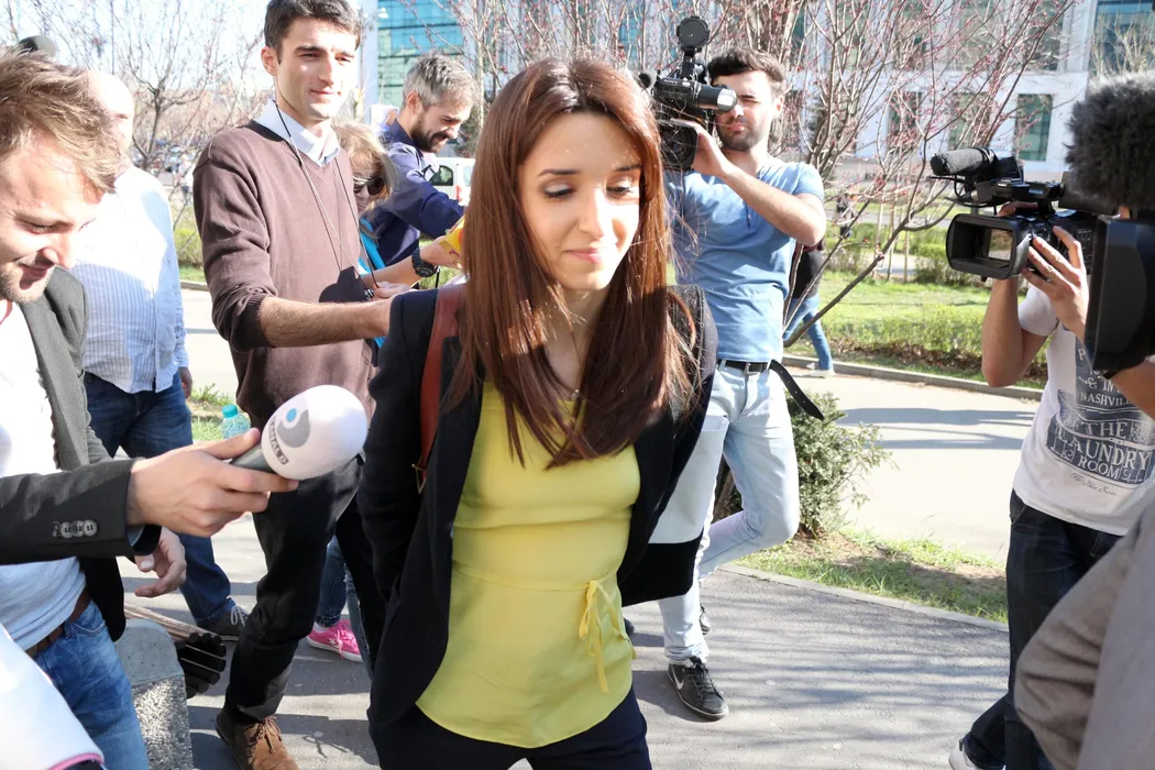 Alexandra Copos pleaca de la Tribunalul Municipiului Bucuresti, vineri, 21 martie 2014. Omul de afaceri George Copos a fost adus în fata judecatorilor Tribunalului Bucuresti, care judeca dosarul denumit generic "Loteria 1". În acest dosar, Copos este acuzat ca a fraudat statul român cu peste 1 milion de euro. Este pentru prima data când Copos este scos din penitenciar dupa condamnarea din dosarul Transferurilor. Dupa câteva ore de audieri, instanta a decis amânarea dosarului pentru 24 aprilie. LIVIU ADASCALITEI / MEDIAFAX FOTO
