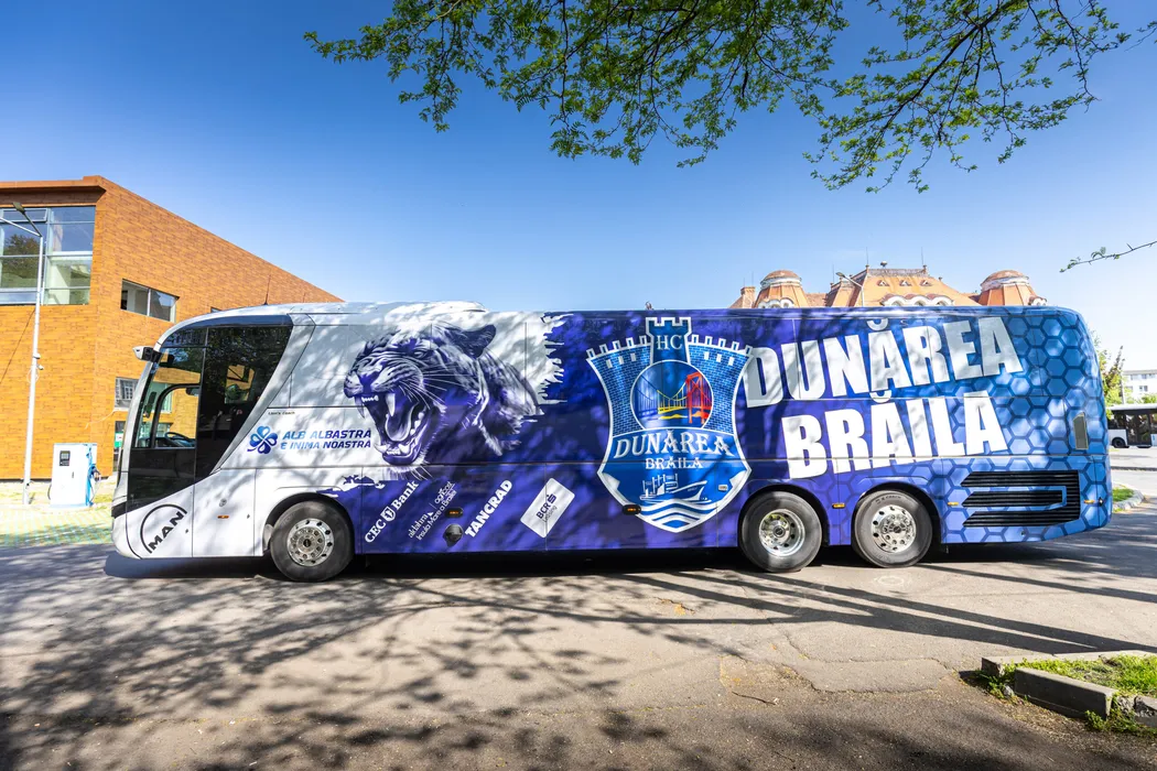 Echipa de handbal feminin Dunărea Brăila și-a „tras” autocar de 450.000 de euro, care are toaletă cu lavoar și face invidioși granzii din Superliga de fotbal! Investiția e din surse private. FOTO