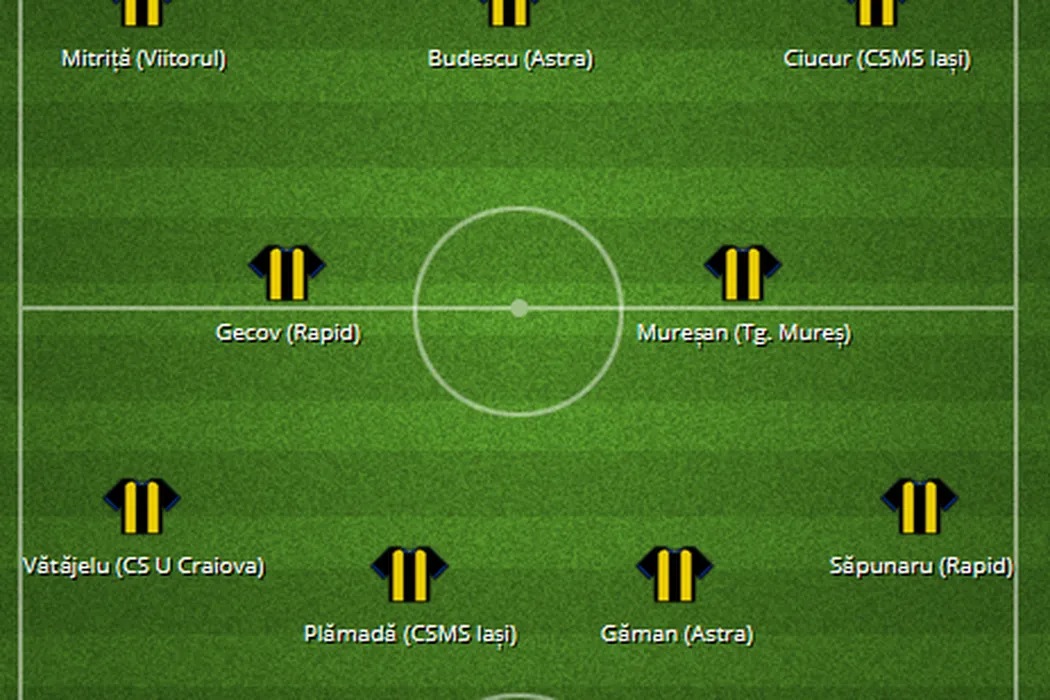 Echipa etapei în Liga 1! Astra, CSMS Iași și Rapid au câte doi jucători, Steaua dă un singur fotbalist în primul „11”