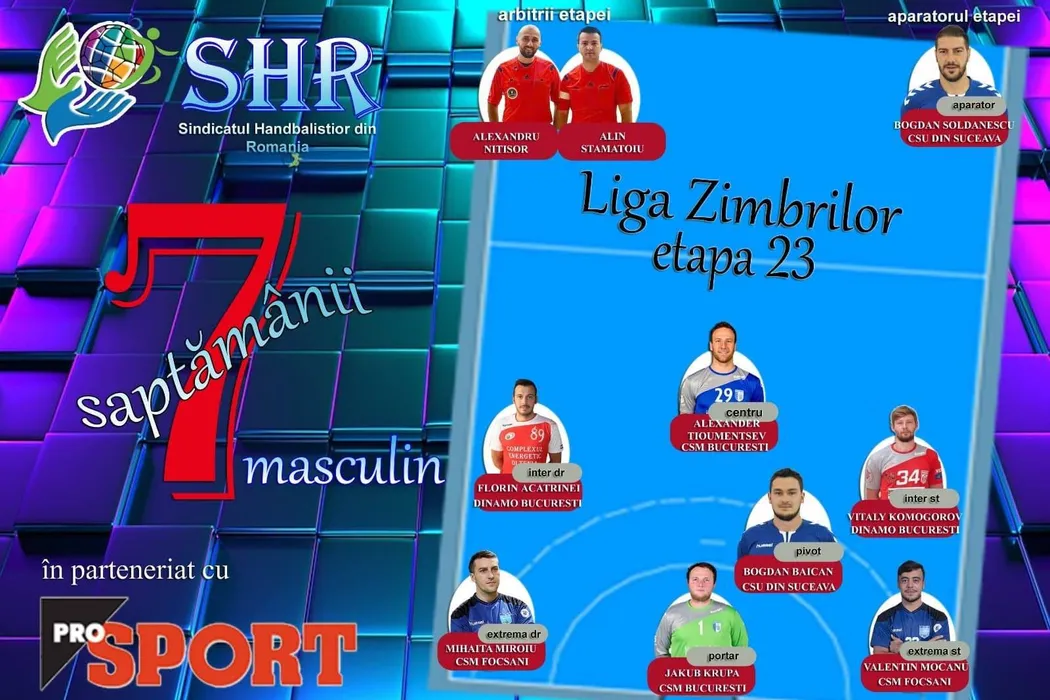 Echipa ideală a etapei a 23-a în Liga Națională de handbal masculin. Dinamo, CSM București, Focșani și Suceava au obținut victorii mari