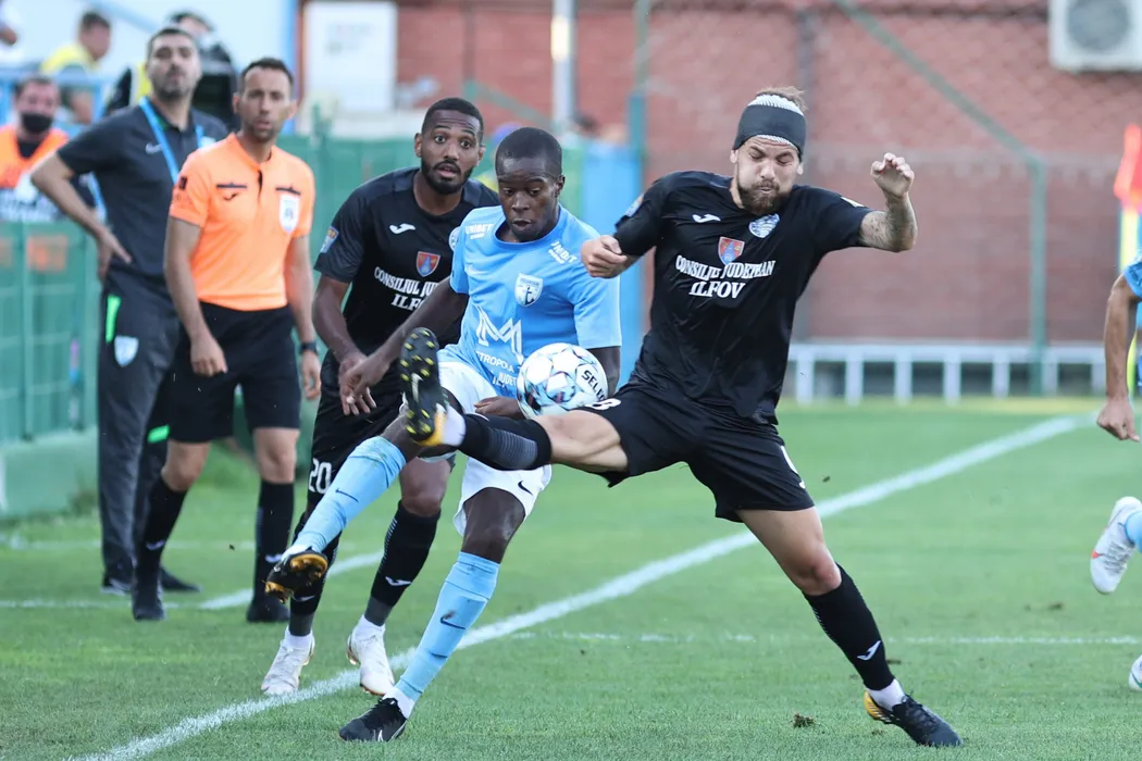 Echipele FC Voluntari (echipament negru) si Academica Clinceni s-au intalnit intr-o partida din etapa 5 a Ligii 1 de fotbal, partida disputata la Voluntari, vineri, 13 august 2021. GEORGE FLUSTER / MEDIAFAX FOTO