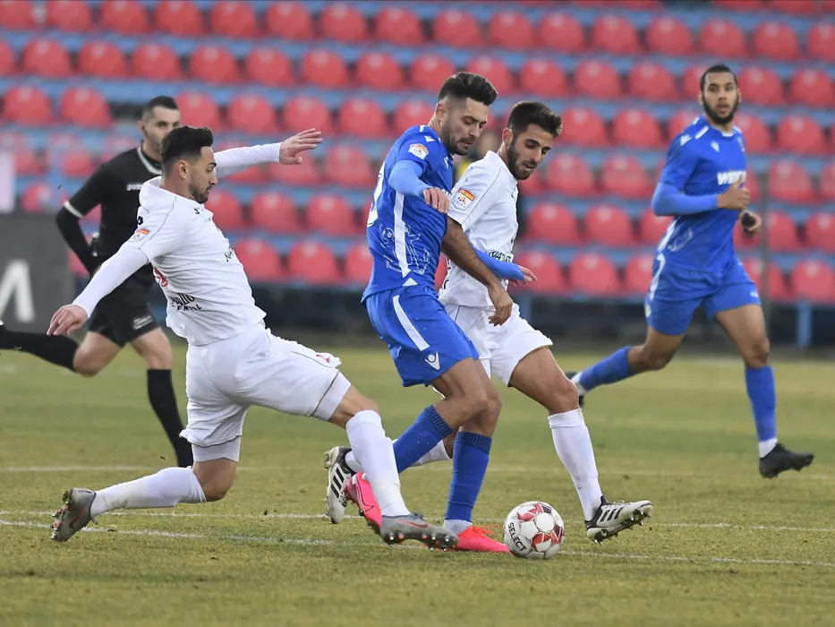 Ionut Stoica, Catalin Stefan Tira si Alfonso Taira in meciul de fotbal dintre FC Voluntari si AFC Hermannstadt, contand pentru Liga 1 Casa Pariurilor, disputat pe Stadionul Anghel Iordanescu din Voluntari, sambata 22 februarie 2019. © FOTO:Razvan Pasarica/SPORT PICTURES