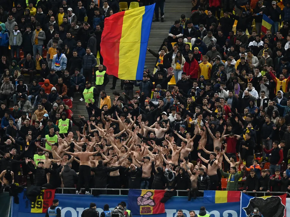 Suporterii romani isi incurajeaza favoritii la meciul de fotbal dintre Romania si Belarus, din cadrul preliminariilor Campionatului European 2024, desfasurat pe Arena Nationala, marti 28 martie 2023. © FOTO:Razvan Pasarica/SPORT PICTURES
