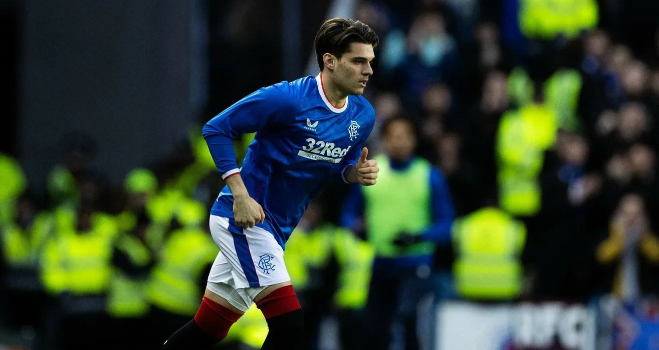 Ianis Hagi of Rangers returns after long term injury during the Scottish Premiership match at Ibrox Stadium, Glasgow.