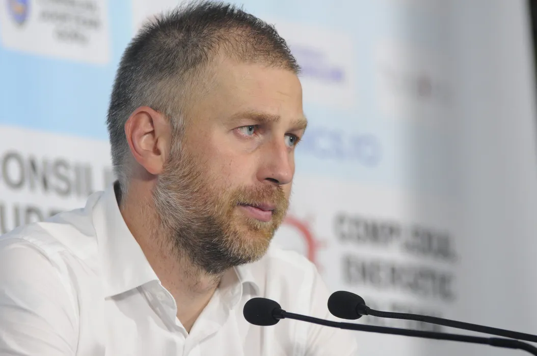 Edward Iordanescu, antrenorul echipei de fotbal Pandurii Targu Jiu, participa la o conferinta de presa, dupa meciul cu ASA Targu Mures, din cadrul etapei a XI-a a Ligii 1 la fotbal, desfasurat pe Stadionul Municipal din Drobeta Turnu Severin, vineri, 18 septembrie 2015. JUSTIN STAVARU / MEDIAFAX FOTO