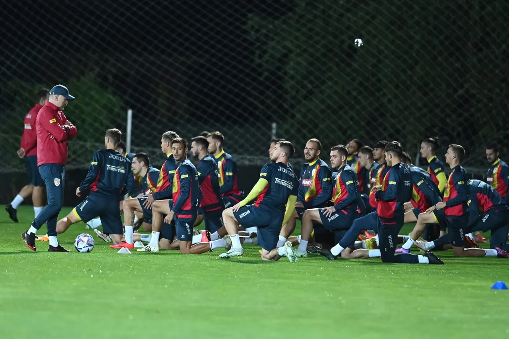 Fotbalistii romani printre care Mario Camora, Deian Sorescu, Denis Alibec, Alexandru Cicâldău si Nicușor Bancu alaturi de antrenorul lor Edward Iordanescu la antrenamentul oficial de dinaintea meciului impotriva Bosniei Hertegovina, contand pentru Liga Natiunilor, desfasurat la Centrul National de Fotbal din Mogosoaia, duminica 25 septembrie 2022. © FOTO:Razvan Pasarica/SPORT PICTURES