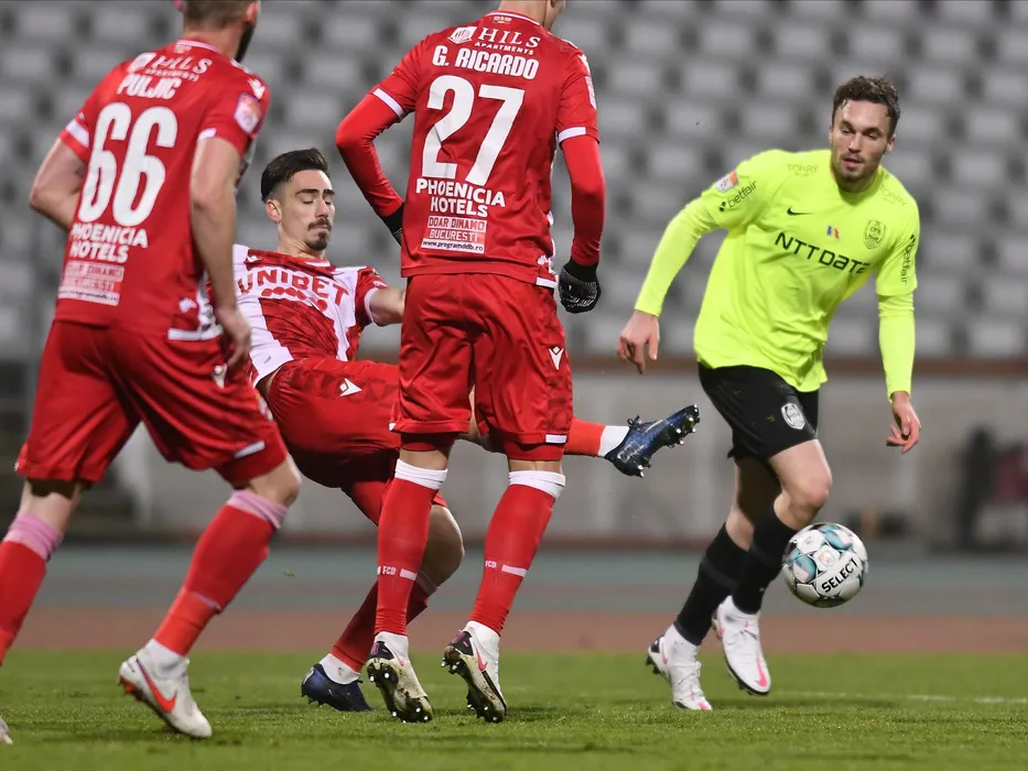 Aleix Garcia Serrano si Gabriel Debeljuh in meciul de fotbal dintre Dinamo Bucuresti si CFR Cluj, contand pentru Liga 1 Casa Pariurilor, desfasurat fara spectatori pe stadionul Dinamo din Bucuresti, joi 17 decembrie 2020. © FOTO:Razvan Pasarica/SPORT PICTURES