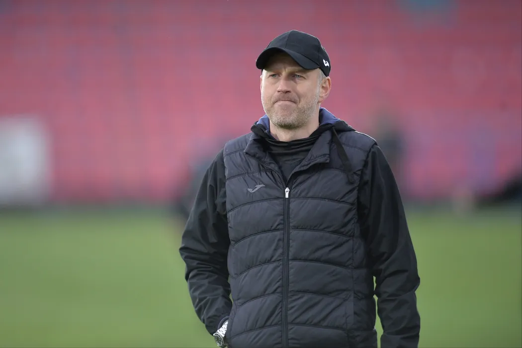 Edi Iordanescu, antrenorul echipei Gaz Metan Medias, urmareste meciul de fotbal contra echipei FC Voluntari din etapa a V-a a play-out-ului Ligii 1, disputat pe stadionul Anghel Iordanescu din Voluntari, duminica, 14 aprilie 2019. ALEXANDRU DOBRE / MEDIAFAX FOTO