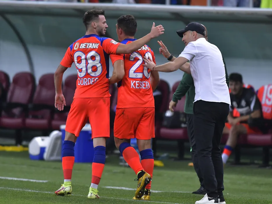 Andrei Ioan Cordea si Edward Iordanescu in meciul de fotbal dintre FCSB si Dinamo Bucuresti, contand pentru Liga 1 Casa Pariurilor, desfasurat pe Arena Nationala din Bucuresti, duminica 12 septembrie 2021. © FOTO:Razvan Pasarica/SPORT PICTURES