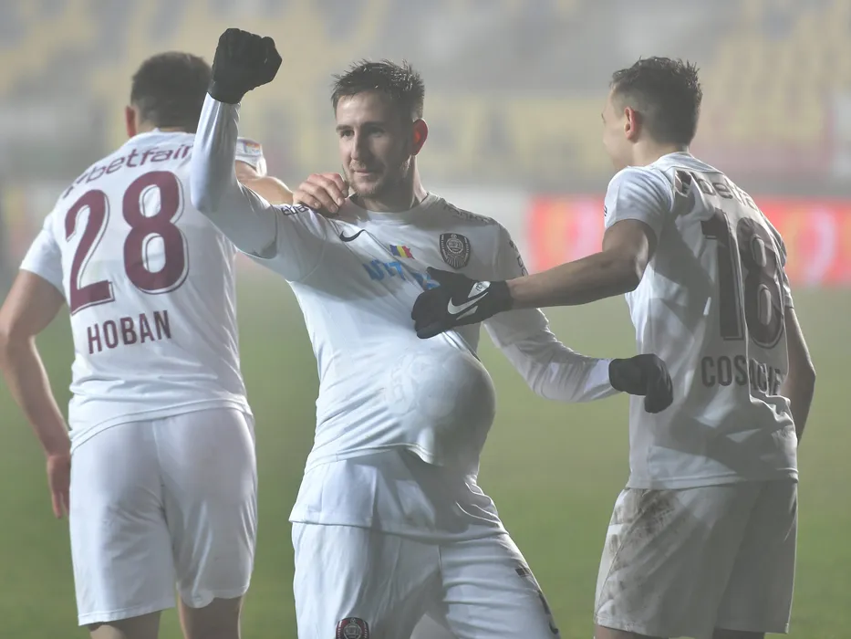 Constantin Adrian Paun se bucura dupa un gol reusit in meciul de fotbal dintre Chindia Targoviste si CFR Cluj, contand pentru Liga 1 Casa Pariurilor, desfasurat fara spectatori pe Stadionul Ilie Oana din Ploiesti, luni 1 februarie 2021. © FOTO:Razvan Pasarica/SPORT PICTURES
