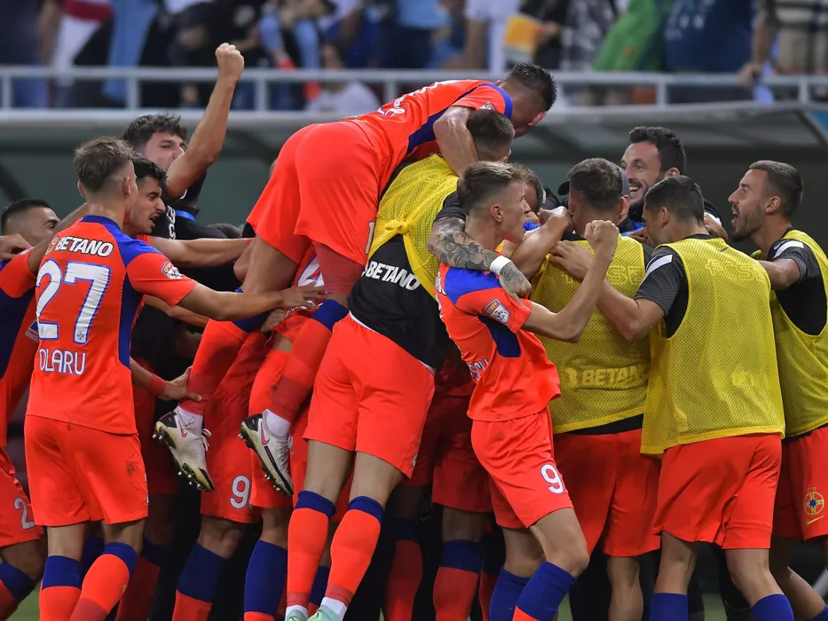Bucurie a fotbalistilor stelisti cu Octavian George Popescu si Valentin Gheorghe dupa un gol marcat de catre Claudiu Andrei Keseru in meciul de fotbal dintre FCSB si Dinamo Bucuresti, contand pentru Liga 1 Casa Pariurilor, desfasurat pe Arena Nationala din Bucuresti, duminica 12 septembrie 2021. © FOTO:Razvan Pasarica/SPORT PICTURES