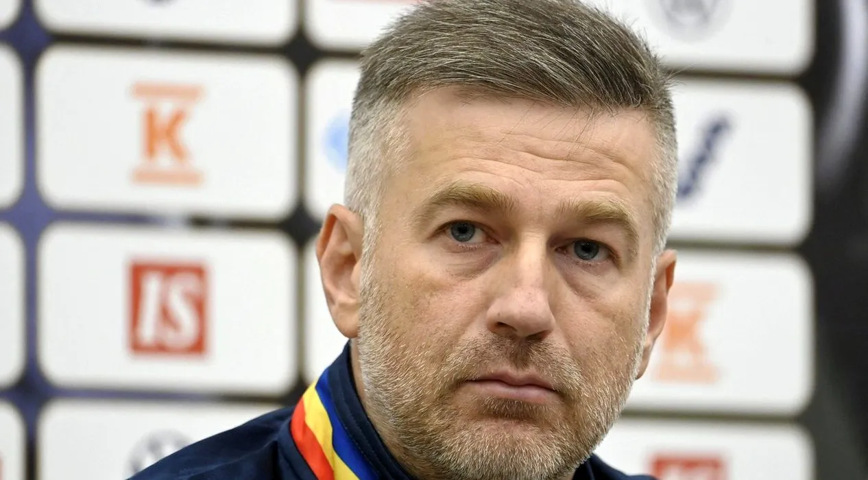 Romania's head coach Edward Iordanescu looks on during a press conference of Romania's national football team in Helsinki on September 22, 2022, on the eve of the UEFA Nations League Group 3 football match between Finland and Romania.,Image: 725277588, License: Rights-managed, Restrictions: Finland OUT, Model Release: no