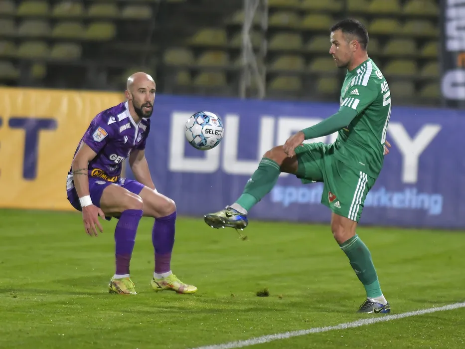 Iasmin Latovlevici si Adnan Aganovic in meciul de fotbal dintre FC Arges si Sepsi OSK Sfantu Gheorghe, contand pentru Liga 1 Casa Pariurilor, desfasurat pe Stadionul Nicolae Dobrin din Pitesti, miercuri 15 decembrie 2021. © FOTO:Razvan Pasarica/SPORT PICTURES