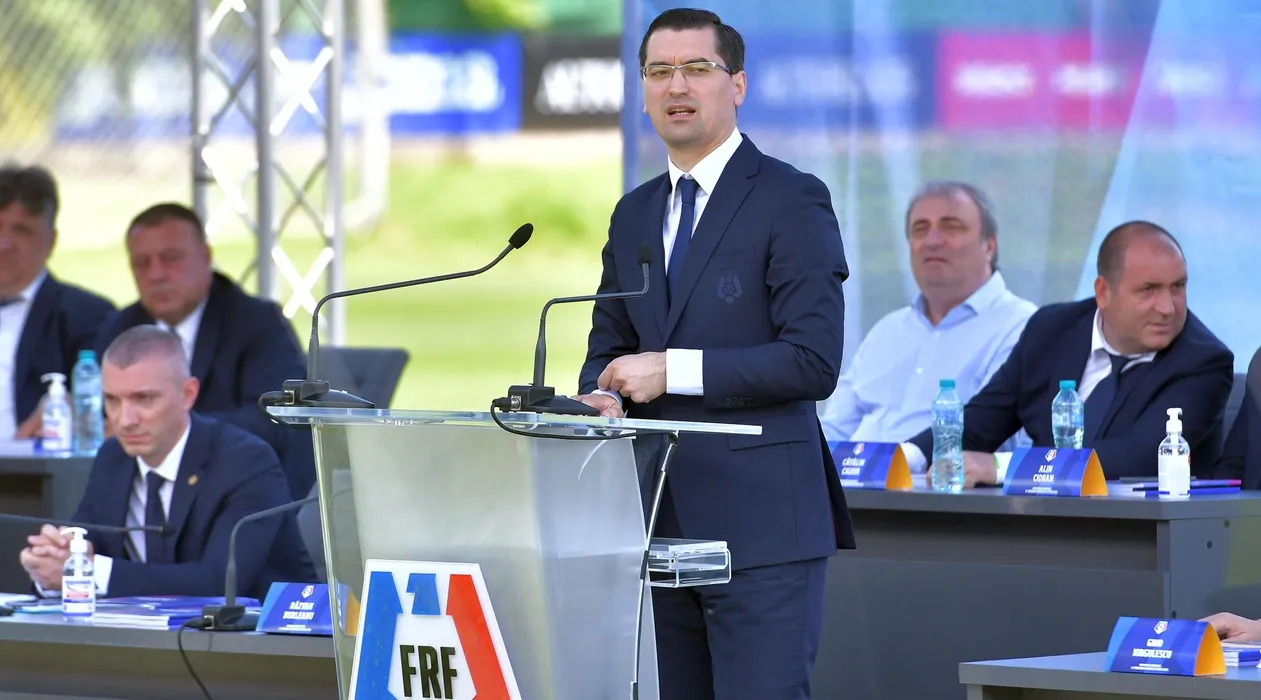 Razvan Burleanu participa la Adunarea Generala a Federatiei Romane de Fotbal, desfasurata la Centrul National de Fotbal de la Mogosoaia, luni 28 iunie 2021. © FOTO:Razvan Pasarica/SPORT PICTURES
