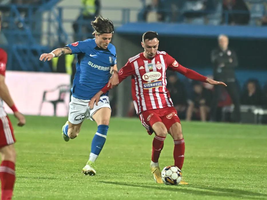 Gabriel Leonard Dănuleasa si Sherif Kallaku in meciul de fotbal dintre Farul Constanta si Sepsi OSK Sfantu Gheorghe, contand pentru Play off-ul Superligii Superbet, desfasurat pe Stadionul central al Academiei Gheorghe Hagi din Ovidiu, vineri 3 mai 2024. © FOTO:Razvan Pasarica/SPORT PICTURES