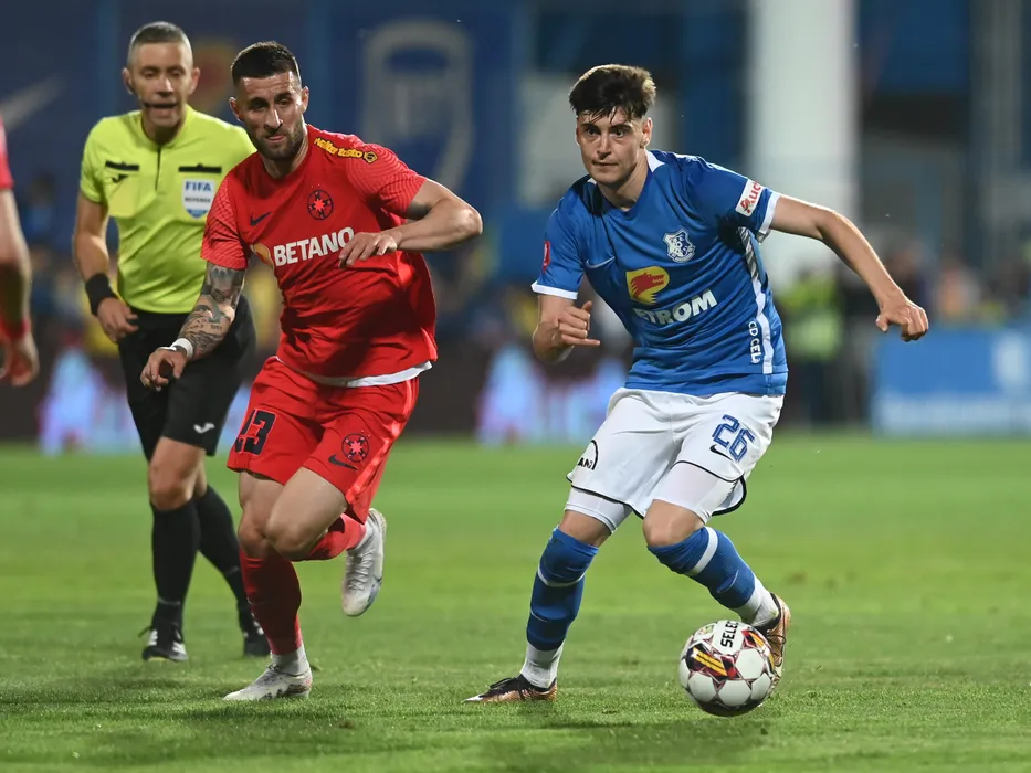 Ovidiu Marian Popescu si Adrian Mazilu in meciul de fotbal dintre Farul Constanta si FCSB, contand pentru Play-off-ul Superligii Superbet, desfasurat pe Stadionul central al Academiei Gheorghe Hagi din Ovidiu, duminica 21 mai 2023. © FOTO:Razvan Pasarica/SPORT PICTURES