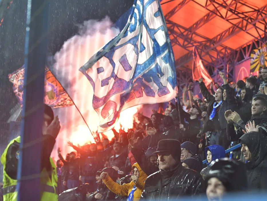 Fumigene in galeria constanteana dupa un gol al favoritilor marcat la meciul de fotbal dintre Farul Constanta si Rapid Bucuresti, contand pentru Superliga Superbet, desfasurat pe Stadionul central al Academiei Gheorghe Hagi din Ovidiu, sambata 11 martie 2023. © FOTO:Razvan Pasarica/SPORT PICTURES