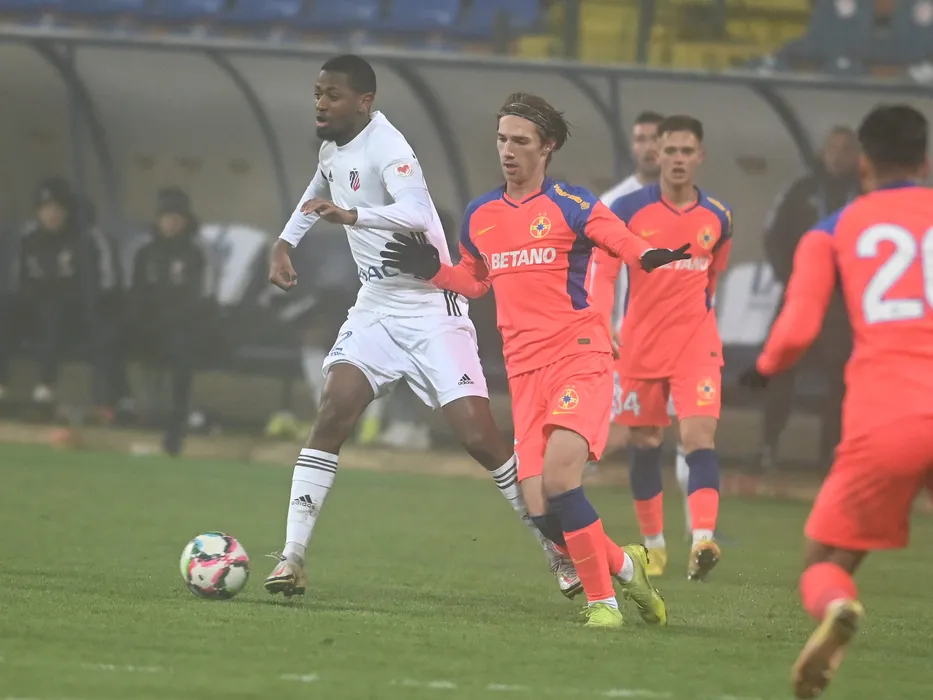 Kassim M'Dahoma si Vlad Tudor in meciul de fotbal dintre FC Botosani si FCSB, contand pentru Cupa Romaniei Betano, desfasurat pe Stadionul Municipal din Botosani, luni 8 decembrie 2022. © FOTO:Razvan Pasarica/SPORT PICTURES