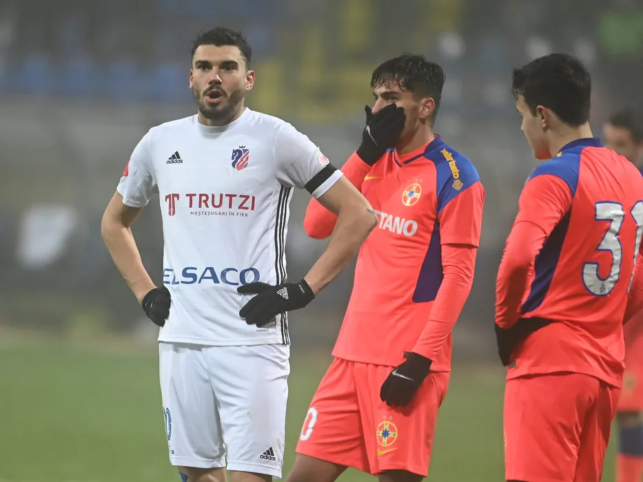 Mihai Alexandru Roman discuta cu Marco Alexandru Dulca in meciul de fotbal dintre FC Botosani si FCSB, contand pentru Cupa Romaniei Betano, desfasurat pe Stadionul Municipal din Botosani, luni 8 decembrie 2022. © FOTO:Razvan Pasarica/SPORT PICTURES