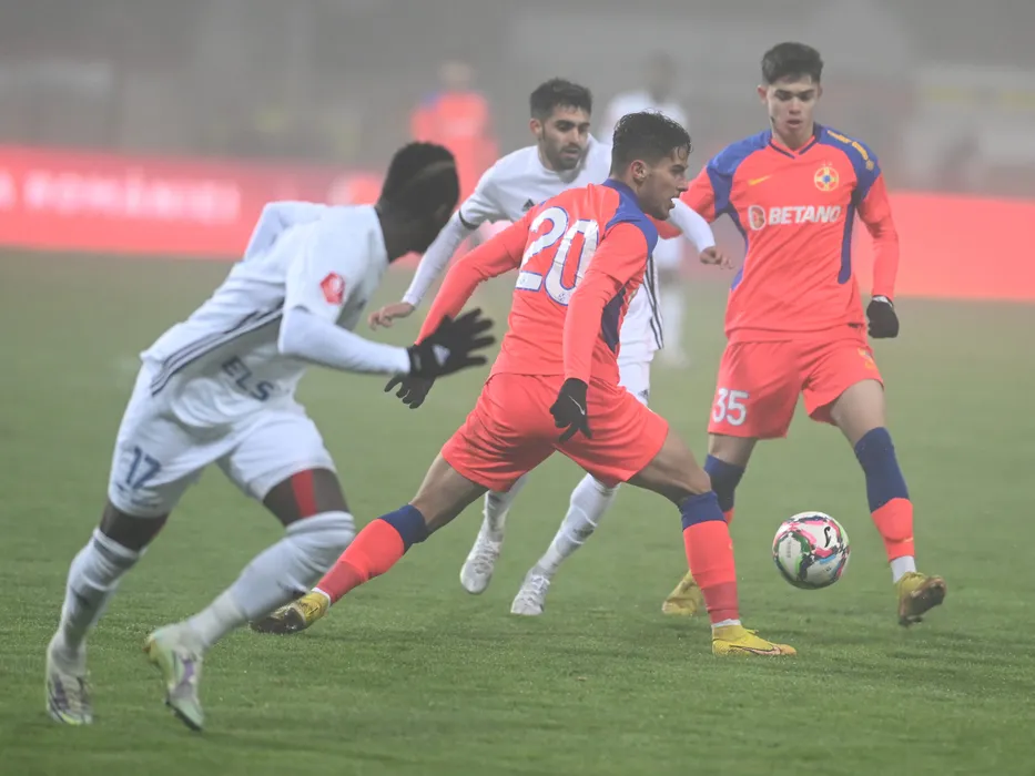 Marco Alexandru Dulca si Victor Stancovici in meciul de fotbal dintre FC Botosani si FCSB, contand pentru Cupa Romaniei Betano, desfasurat pe Stadionul Municipal din Botosani, luni 8 decembrie 2022. © FOTO:Razvan Pasarica/SPORT PICTURES