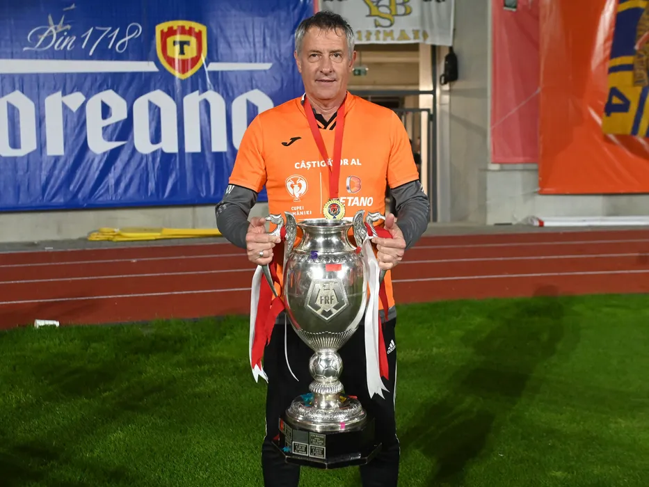 Cristiano Bergodi pozeaza alaturi de trofeul dupa castigarea Cupei Romaniei in urma meciului de fotbal dintre Sepsi OSK Sfantu Gheorghe si Universitatea Cluj, desfasurat pe Stadionul Municipal din Sibiu, miercuri 24 mai 2023. © FOTO:Razvan Pasarica/SPORT PICTURES