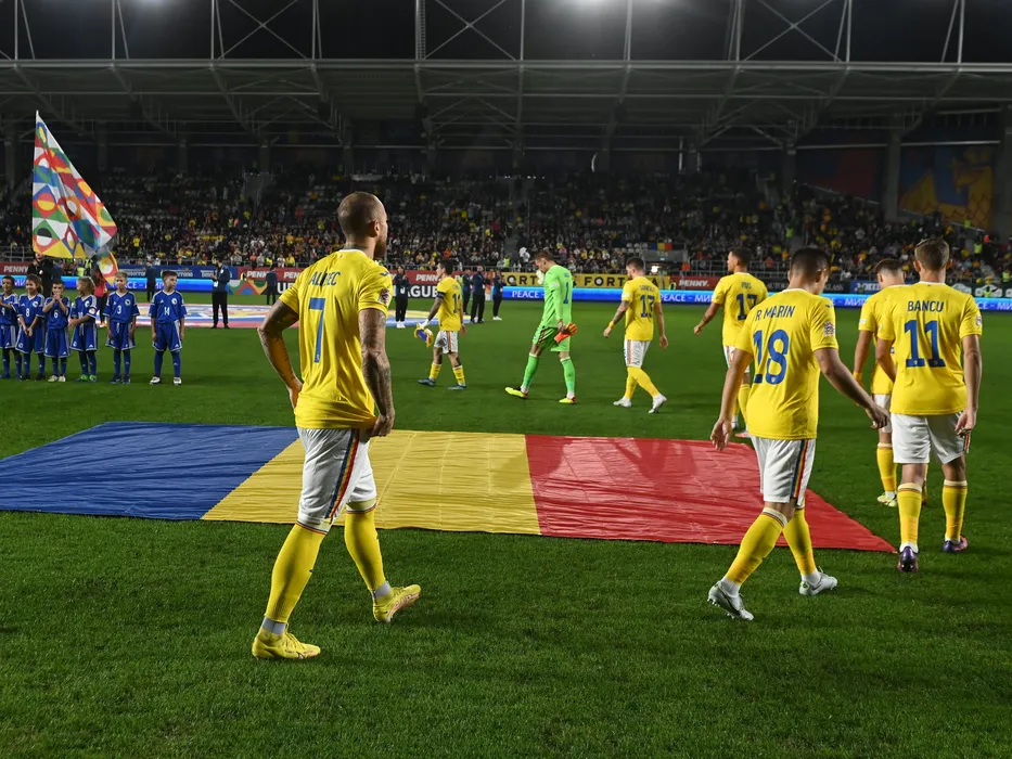 Fotbalistii romani la startul meciului de fotbal dintre Romania si Bosnia Hertegovina, contand pentru Liga Natiunilor, desfasurat pe Stadionul Rapid Giulesti din Bucuresti, luni 26 septembrie 2022. © FOTO:Razvan Pasarica/SPORT PICTURES