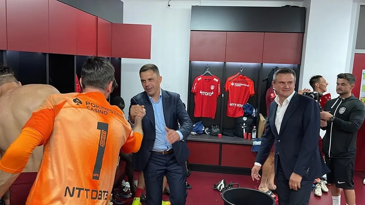Eduard Novak, euforic în vestiarul lui CFR Cluj după calificarea în grupele Conference League! Cristi Balaj: „La gol am sărit în brațele domnului ministru”