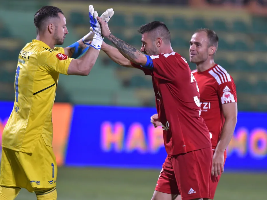 Bucurie a fotbalistilor botoseneni Eduard Adrian Pap, Alin Ioan Seroni si Andrei Alexandru Patache dupa meciul de fotbal dintre FC Voluntari si FC Botosani, contand pentru Superliga Superbet, desfasurat pe Stadionul Orasenesc din Mioveni, sambata 23 iulie 2022. © FOTO:Razvan Pasarica/SPORT PICTURES