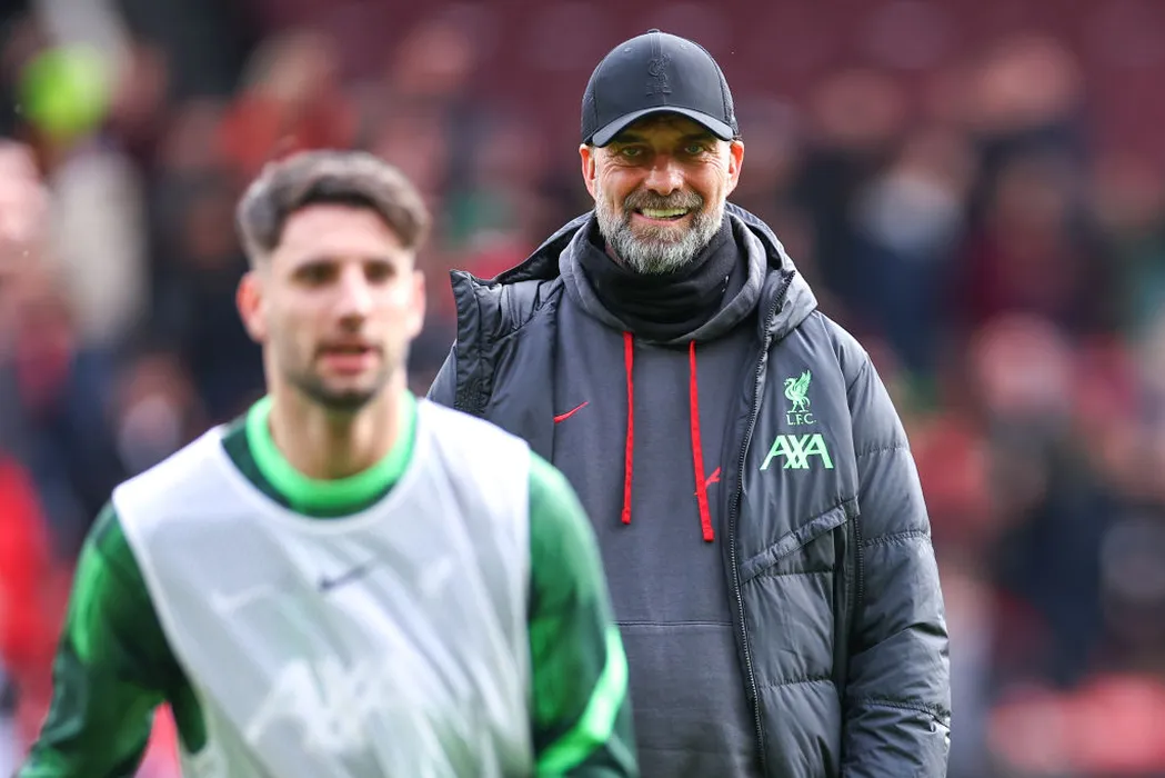 MANCHESTER, ENGLAND - MARCH 17: Jurgen Klopp the head coach / manager of Liverpool during the Emirates FA Cup Quarter Final fixture between Manchester United and Liverpool at Old Trafford on March 17, 2024 in Manchester, England. (Photo by Robbie Jay Barratt - AMA/Getty Images)