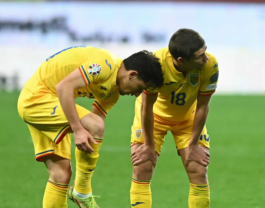 Arbitrul central Allard Lindhout alaturi de fotbalistii romani Olimpiu Morutan si Răzvan Marin in meciul de fotbal dintre Romania si Belarus, din cadrul preliminariilor Campionatului European 2024, desfasurat pe Arena Nationala, marti 28 martie 2023. © FOTO:Razvan Pasarica/SPORT PICTURES