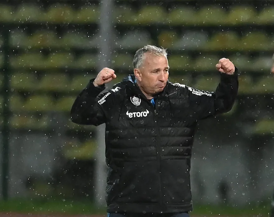 Dan Petrescu se bucura dupa victoria din meciul de fotbal dintre FC Arges si CFR Cluj, contand pentru Superliga Superbet, desfasurat pe Stadionul Nicolae Dobrin din Pitesti, luni 19 septembrie 2022. © FOTO:Razvan Pasarica/SPORT PICTURES