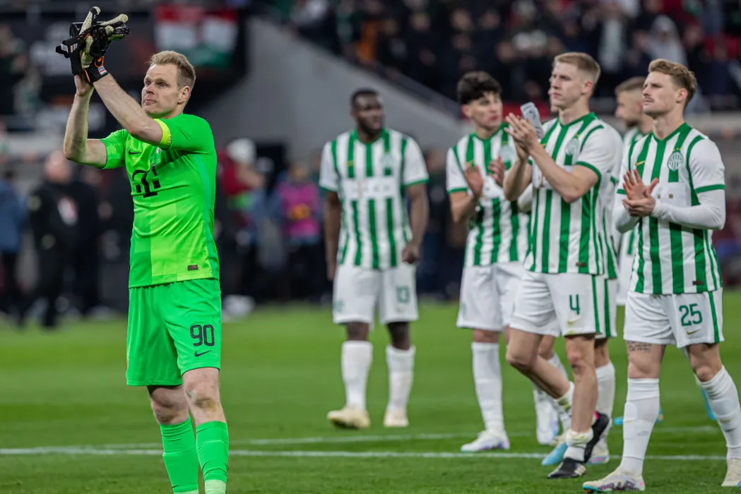 Ferencvaros players thanks for the support after the UEFA Europa League Round of 16, 2nd leg match at Puskas Arena on March 16, 2023 in Budapest, Hungary. (Photo by Robert Szaniszlo/NurPhoto via Getty Images)
