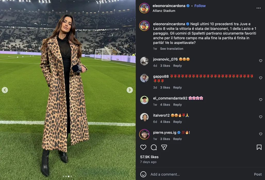 Eleonora a atras toate privirile la Inter – Juventus. Peste 40.000 de aprecieri pentru frumoasa jurnalistă